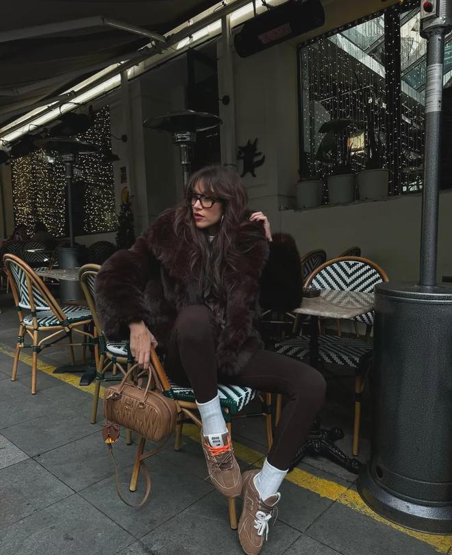 最后以运小棕鞋收尾●◁…△,为整体增添几分运动活力□△■★,与贵气高级的皮草形成个性的混搭时尚▼